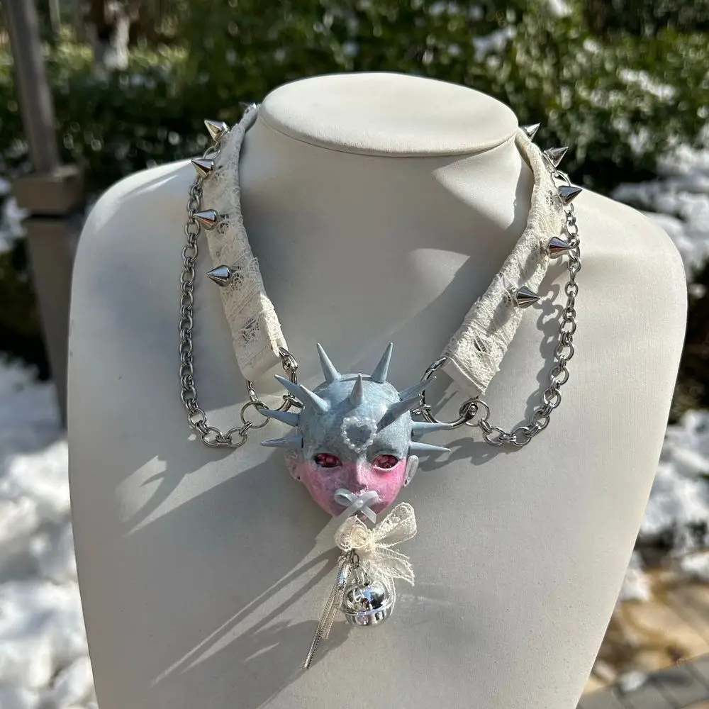Y2K Doll Necklace Bow Doll head Pendants New Gothic Style Is A Jewelry Accessory For Both Women And Men As A Party Gift $14.54