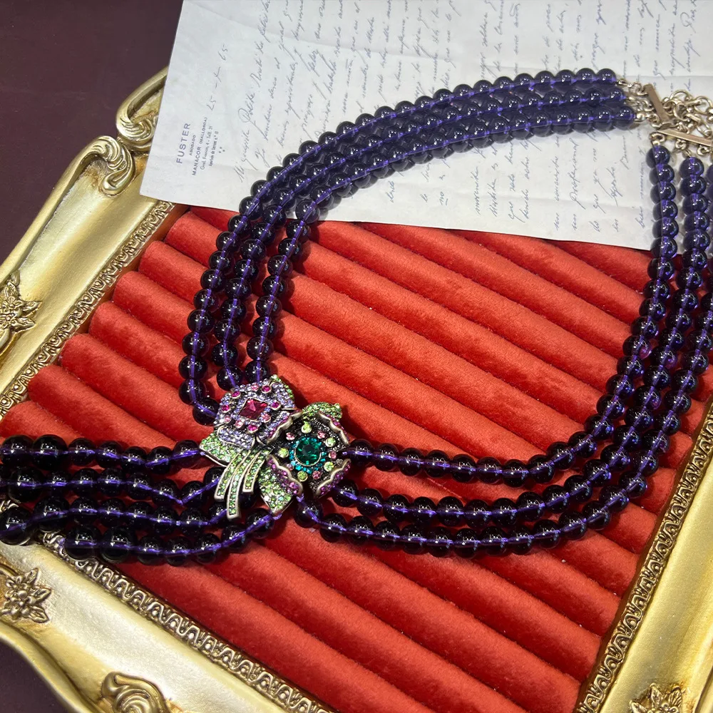 Retro Trend Antique Amethyst 3-layer Medieval Diamond Necklace High-end Vintage Long Sweater Chain $25.41