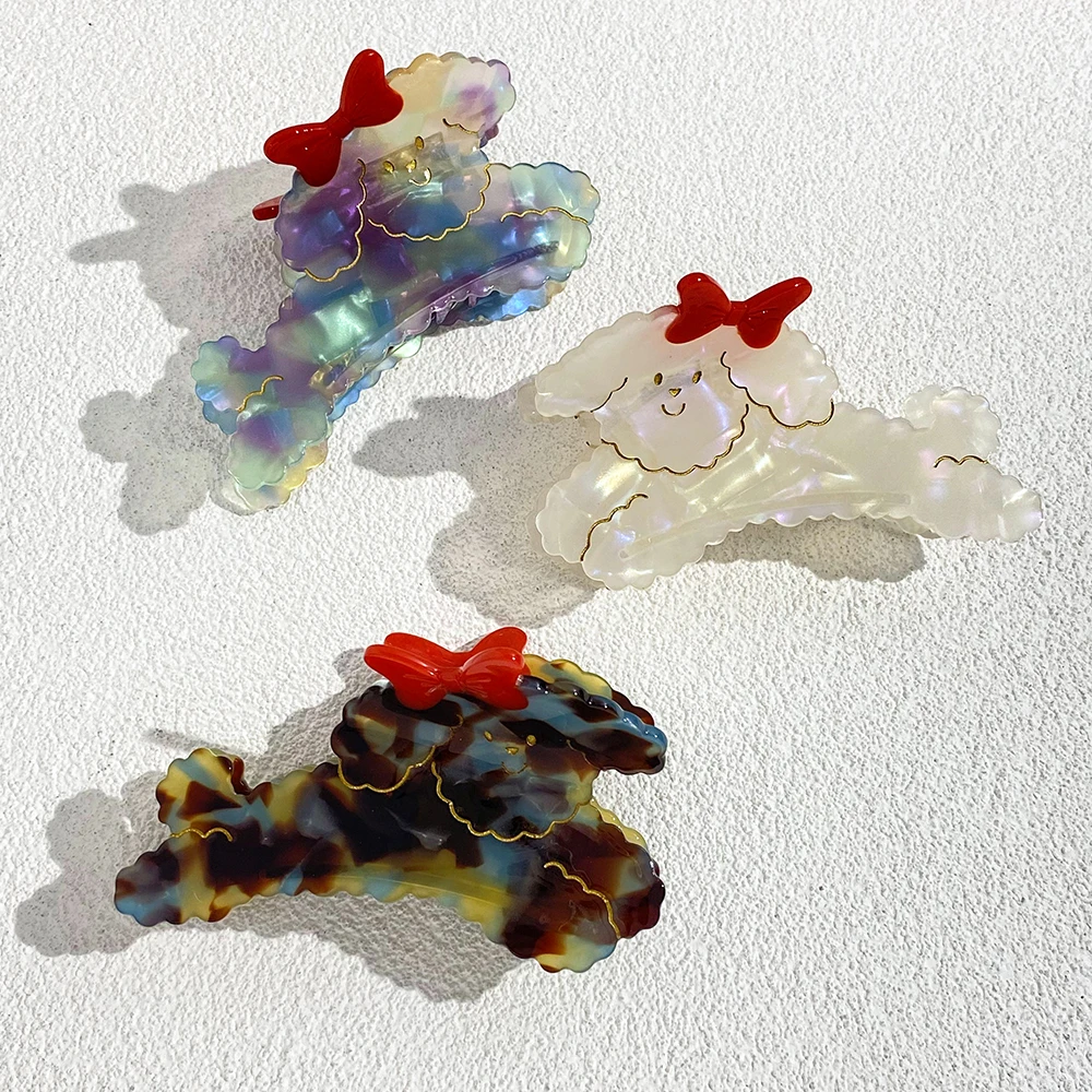 New Cute Bow Knot Cartoon Dog Hair Clip Claw For Women Creative Acetate No Slip Fixed Shark Hairpin Accessories Tool Gifts $4.87