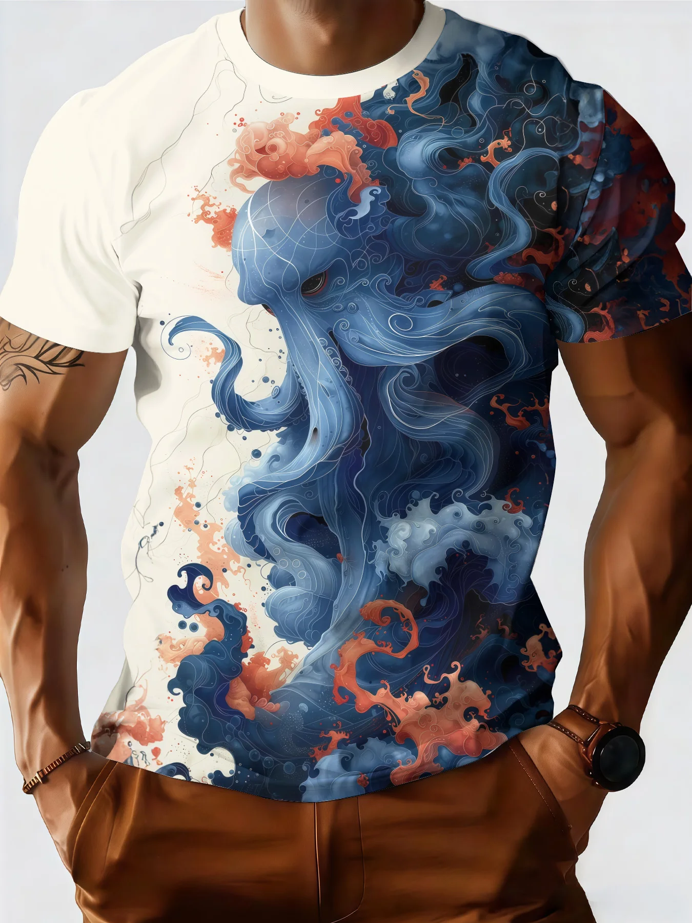 Men's T-shirt Summer New O-neck Sea Roll Octopus 3D Printed Half Sleeve Breathable Short Sleeve Original Fashionable Menswear $13.24