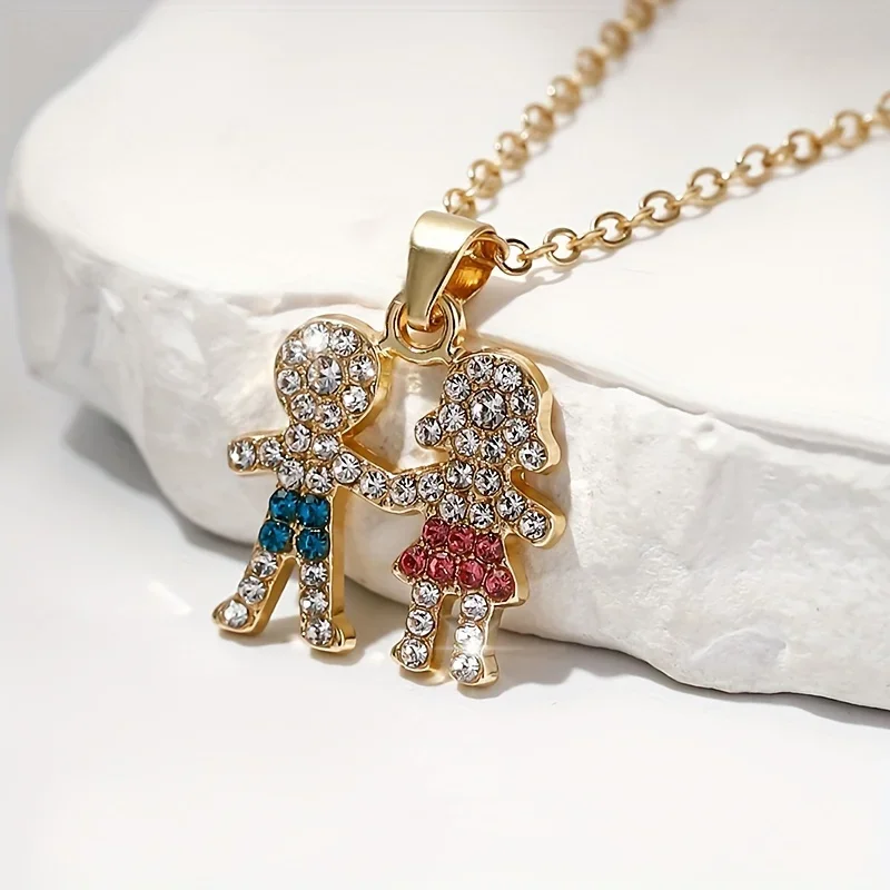 A fashionable new alloy gold-plated rhinestone cartoon men and women holding hands shape pendant necklaceovv $2.23