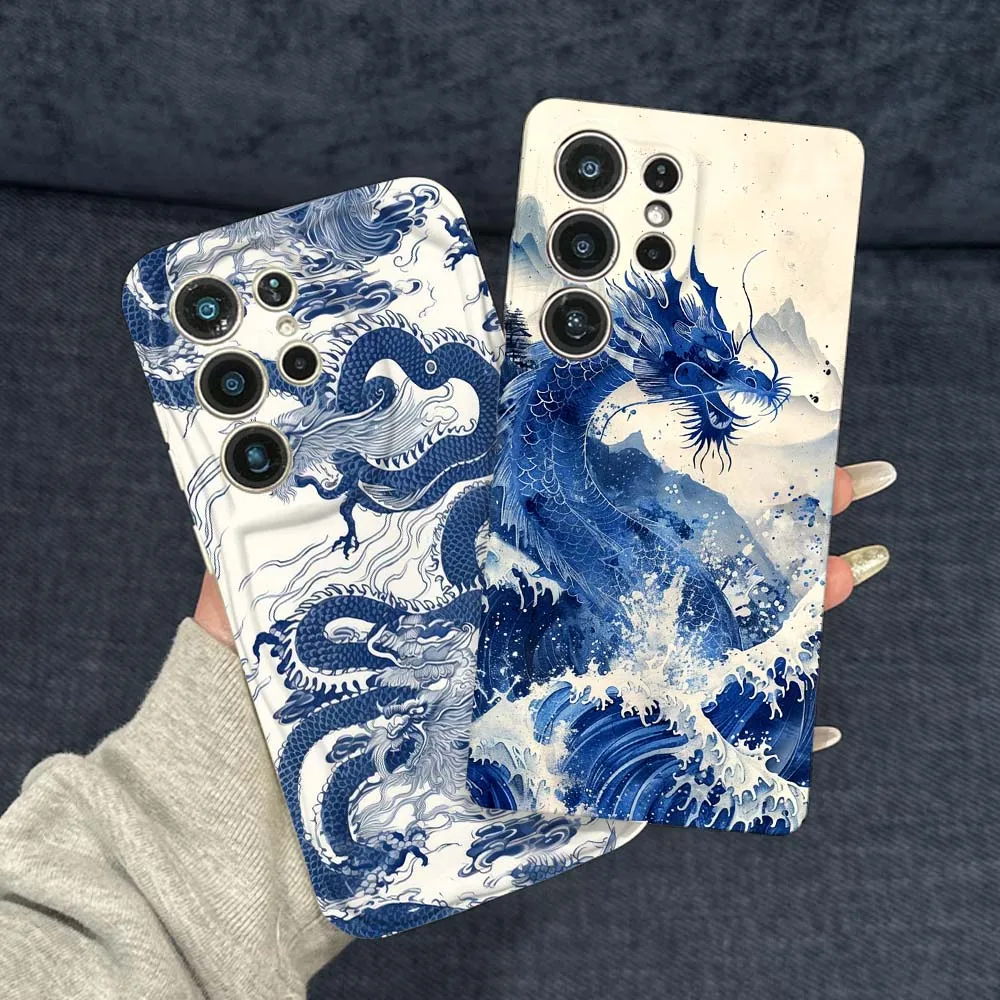 Fashion Dragon Anime Phone Case For For Samsung Galaxy S26 S25 S24 S23 S22 S21 Plus Ultra FE Lite 5G Feilin Wave Oil Shell $4.10