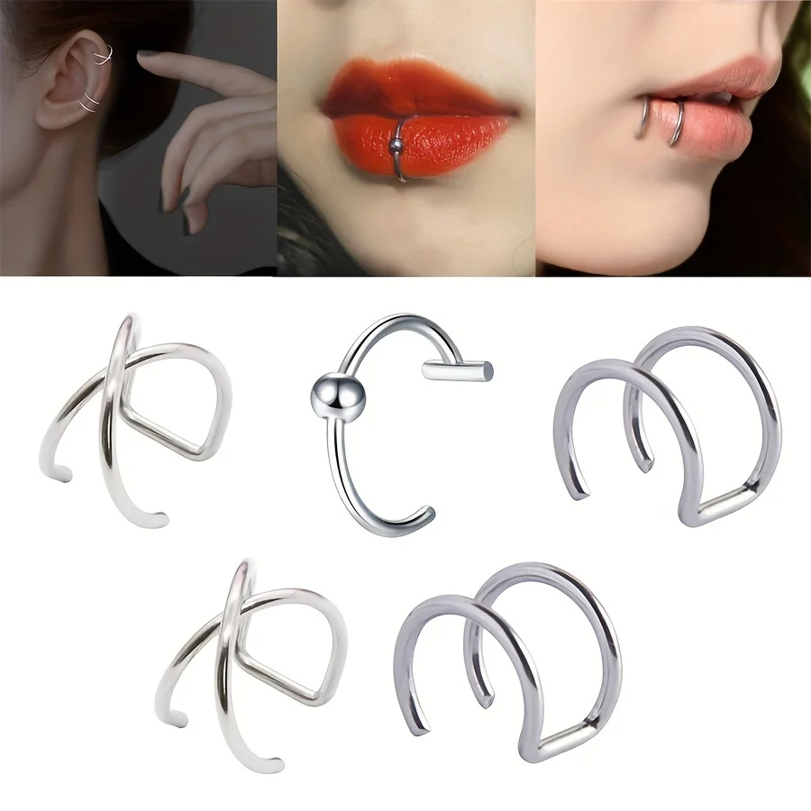 2pcs Minimalist Style Mini Trendy Fake Nose Piercing Jewelry Lip Ring Clip On Earrings Without Ear Hole Jewelry For Women $3.24