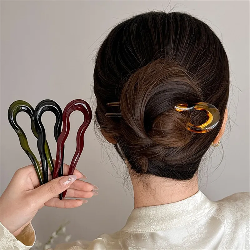U-Shaped Hair Fork Fashion Tortoiseshell Acetate Acrylic Hairpin Geometric Design Headwear Hair Sticks Women Girls $5.75