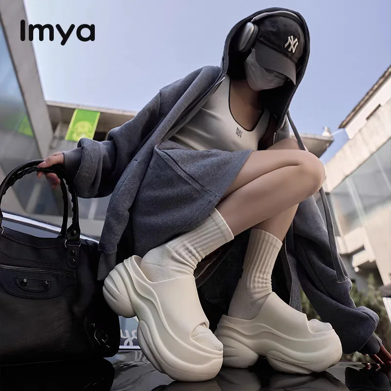 Platform Slippers Women's Non-Slip Net Red Small Muffin Bottom Height Increasing Flip-Flops Fashion Trendy Beach Sandals $43.80