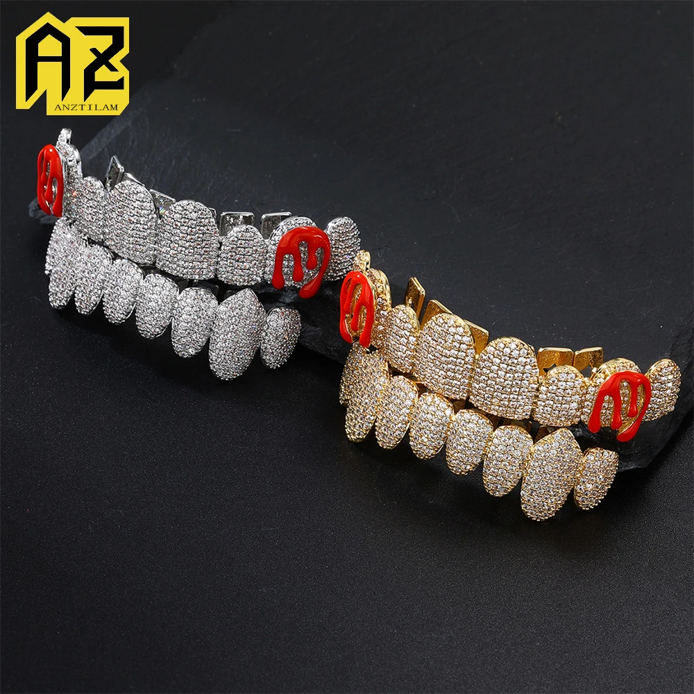 Anztilam Red Oil Grillz Iced Out Grills Tooth Grill Men Women Hip Hop Caps Brass Fashion Jewelry Free Shipping $17.16