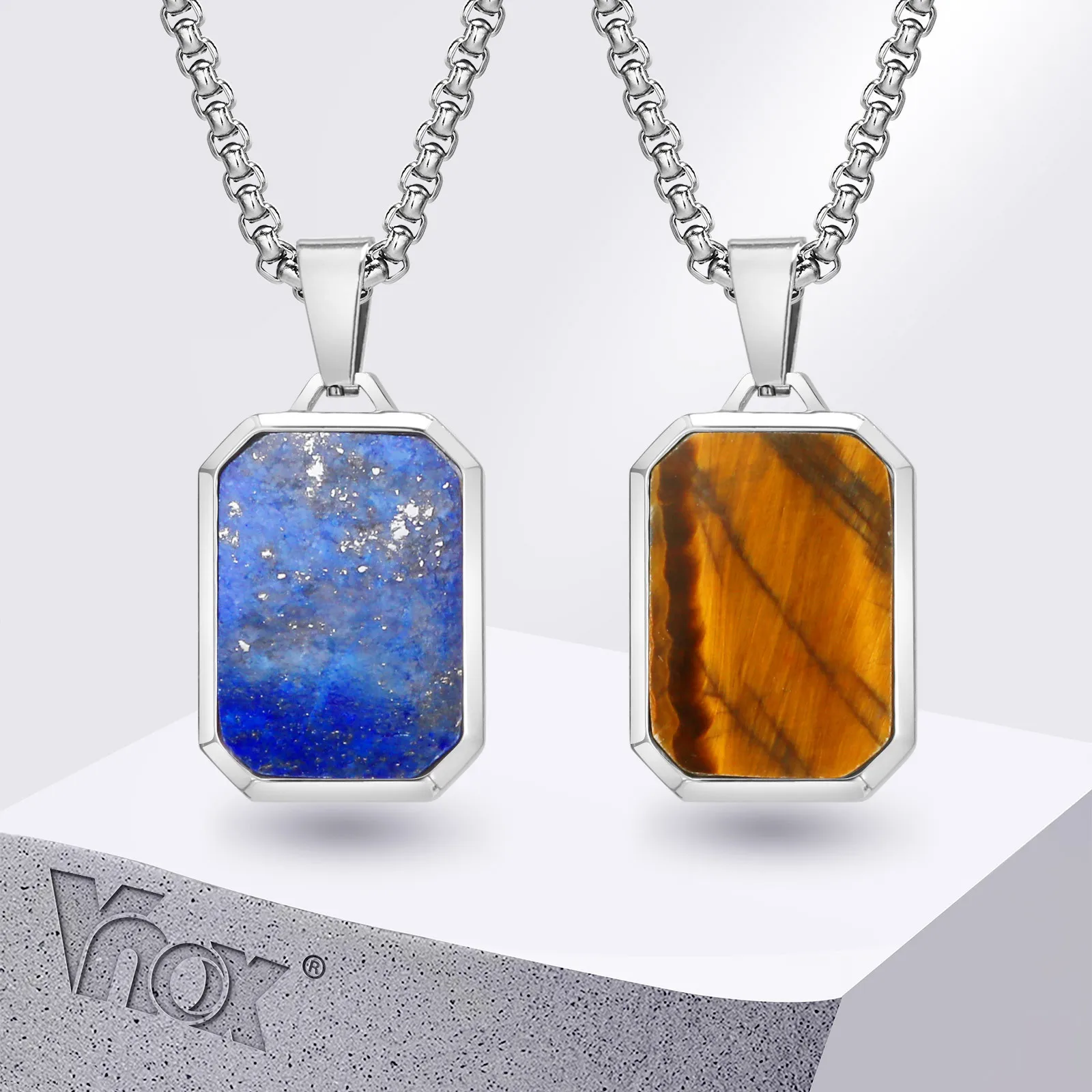 Vnox Simple Geometric Pendant Necklaces For Men Women, Stainless Steel Rectangle Pendant, Natural Stone Collar With Box Chain $7.80