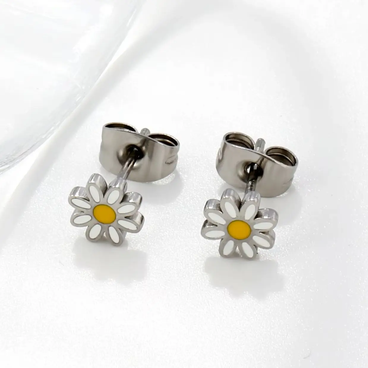 316L Stainless Steel Romantic Daisy Flower Stud Earrings Tiny Small Ears Piecring for Girls/Woman Summer Cute Teenagers Gifts $2.61
