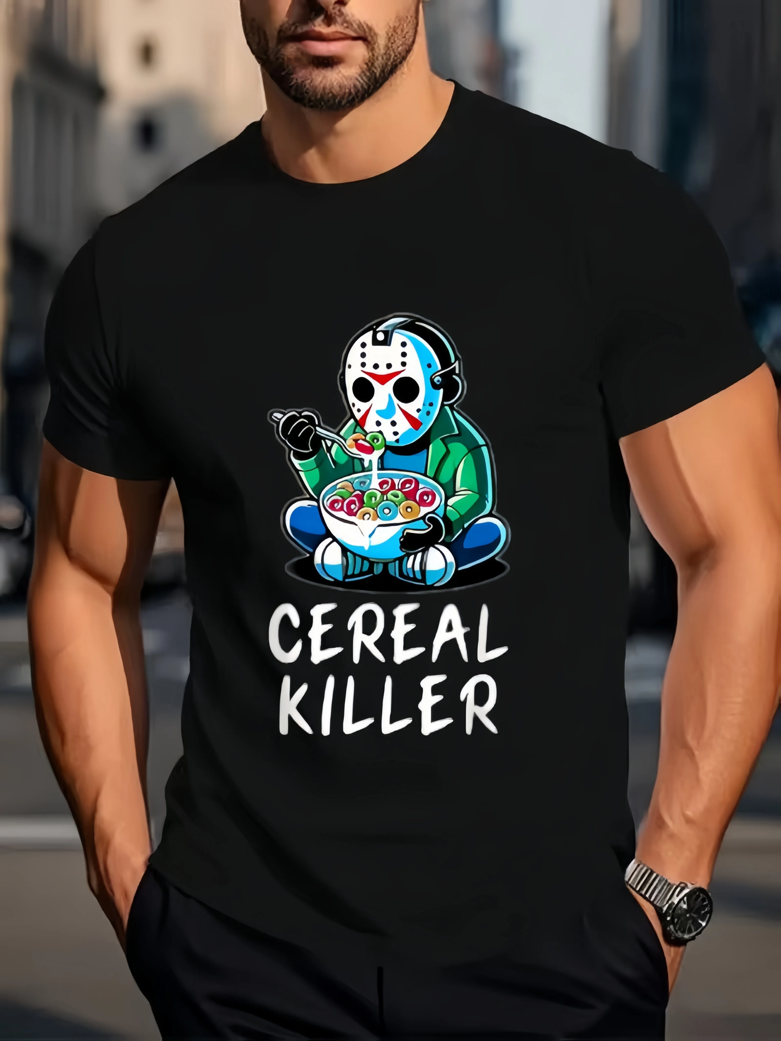 Summer-Spring men's fashion T-shirt with a comfortable fit, casual crew neck short sleeves, printed with the words $7.86