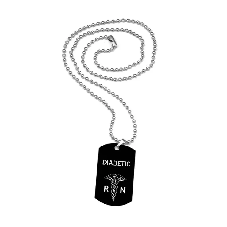 Black Dog Tag Pendant Beaded Necklace for Men Woman Medical Alert ID Necklaces ICE SOS Jewelry DIABETIC $2.08