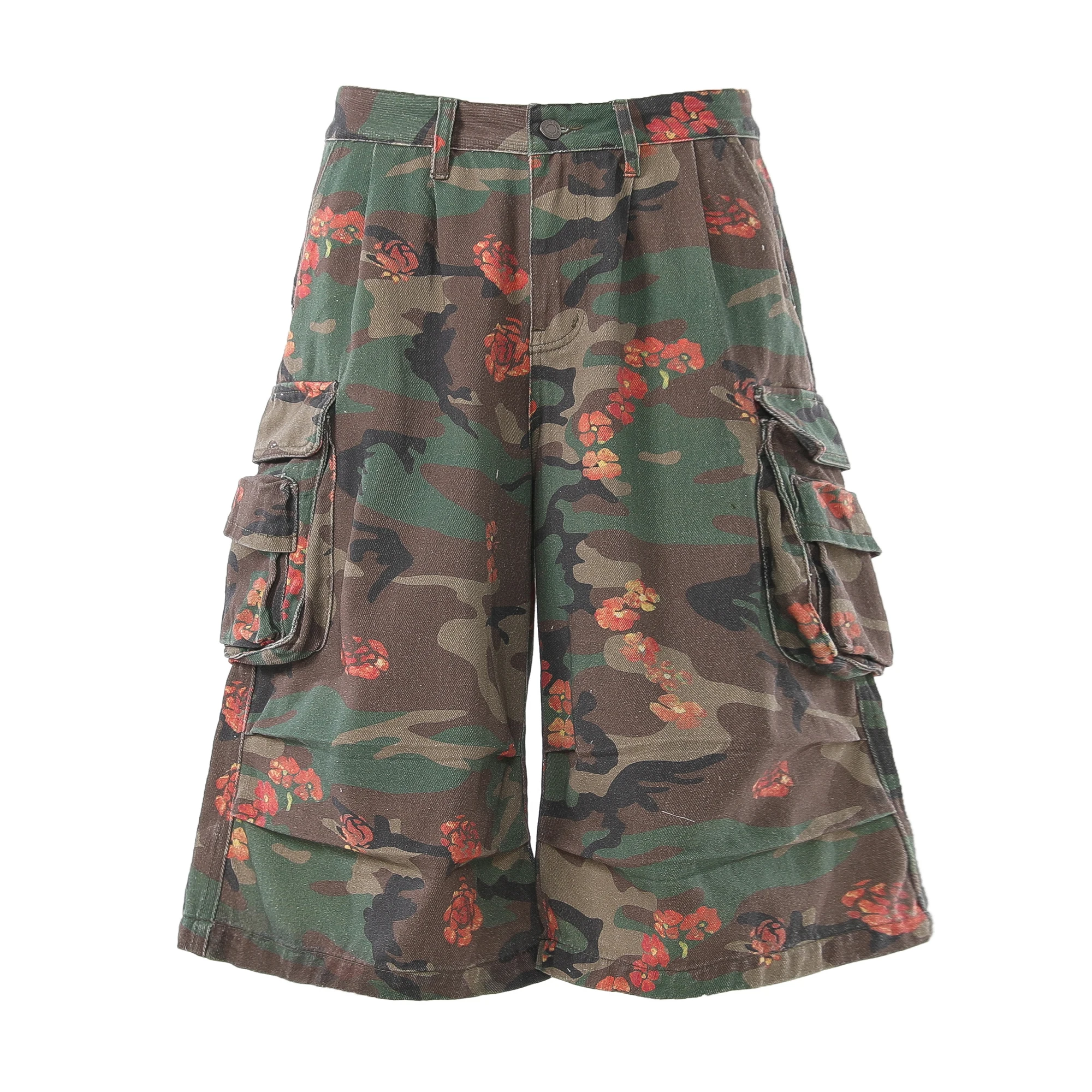 Men's Camo Floral Cargo Shorts Multi Pocket Baggy Casual Camouflage Shorts Fashion Streetwear Wide Leg Knee Length Pants $34.62