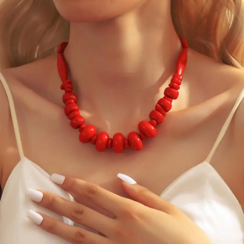 1/2Pcs Trendy Vintage Beaded Chain Bohemian Necklaces For Women Big Beads Coral Pendant Fashion Jewelry Gift $4.16
