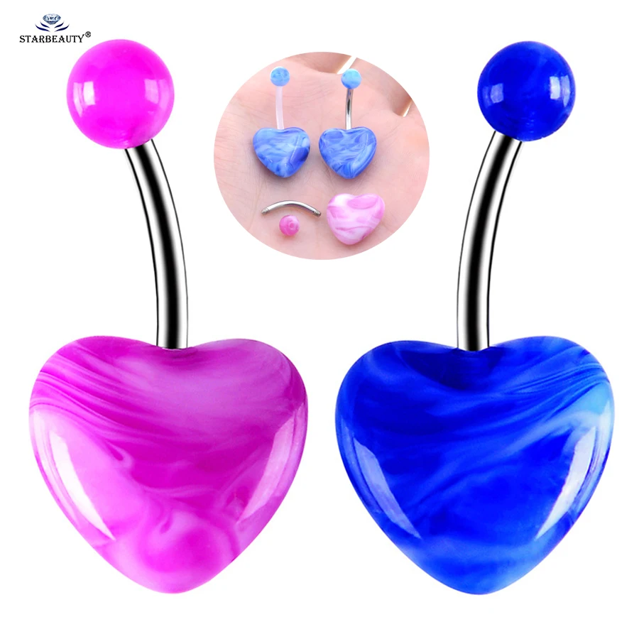 Starbeauty 14G 1.6x10mm Acrylic Heart Dangle Belly Button Rings Earrings Belly Piercing Ombligo Navel Ring Ear Piercing Jewelry $0.76