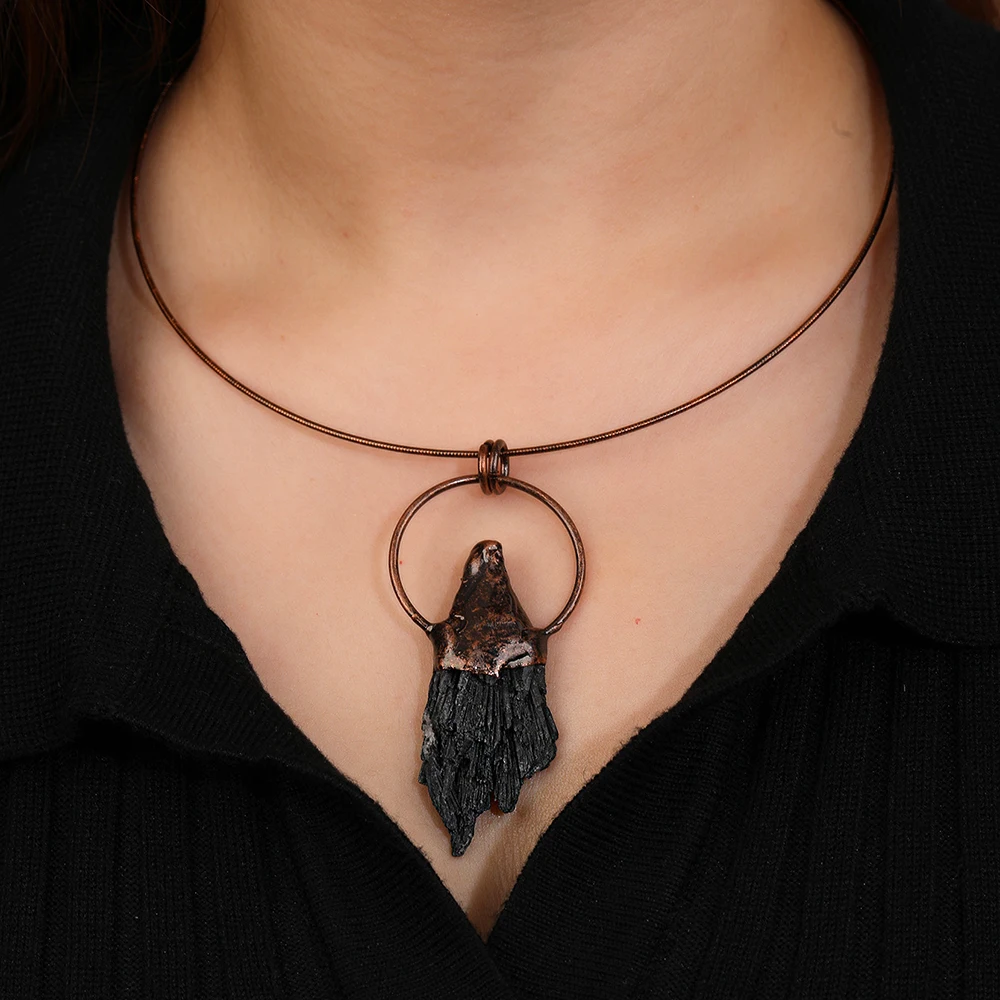 Natural Black Tourmaline Raw Eagle Stone Pendant Choker Boho Punk Hip Hop Unique Women's Bold Statement Jewelry for Party Gift $5.39