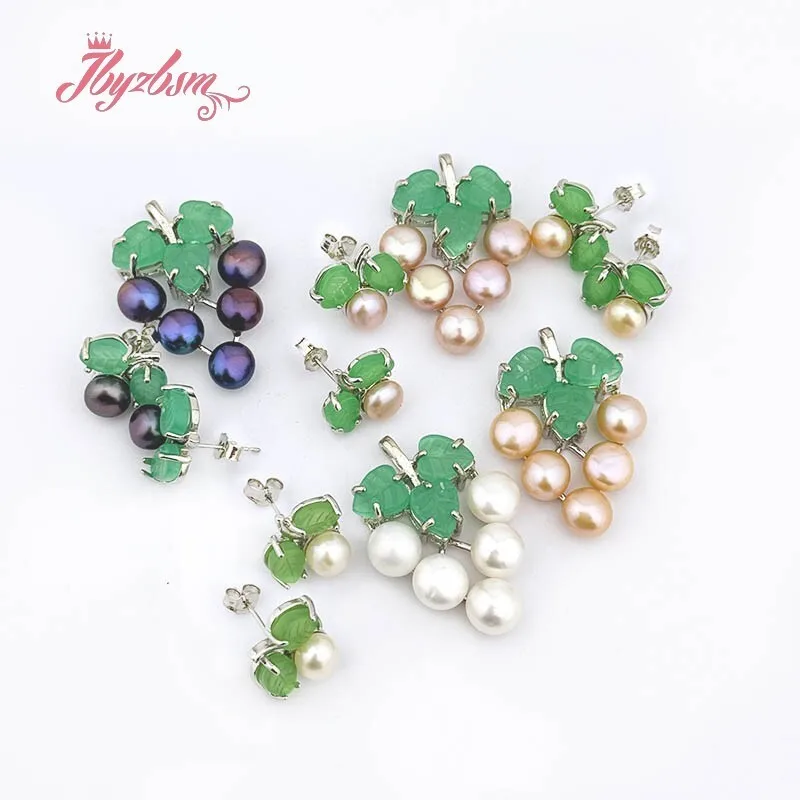 Natural Freshwater Pearl Green Grape Stone Beads Silver Plates Pendant Earring Fashion Jewelry Christmas Party Gift $4.79