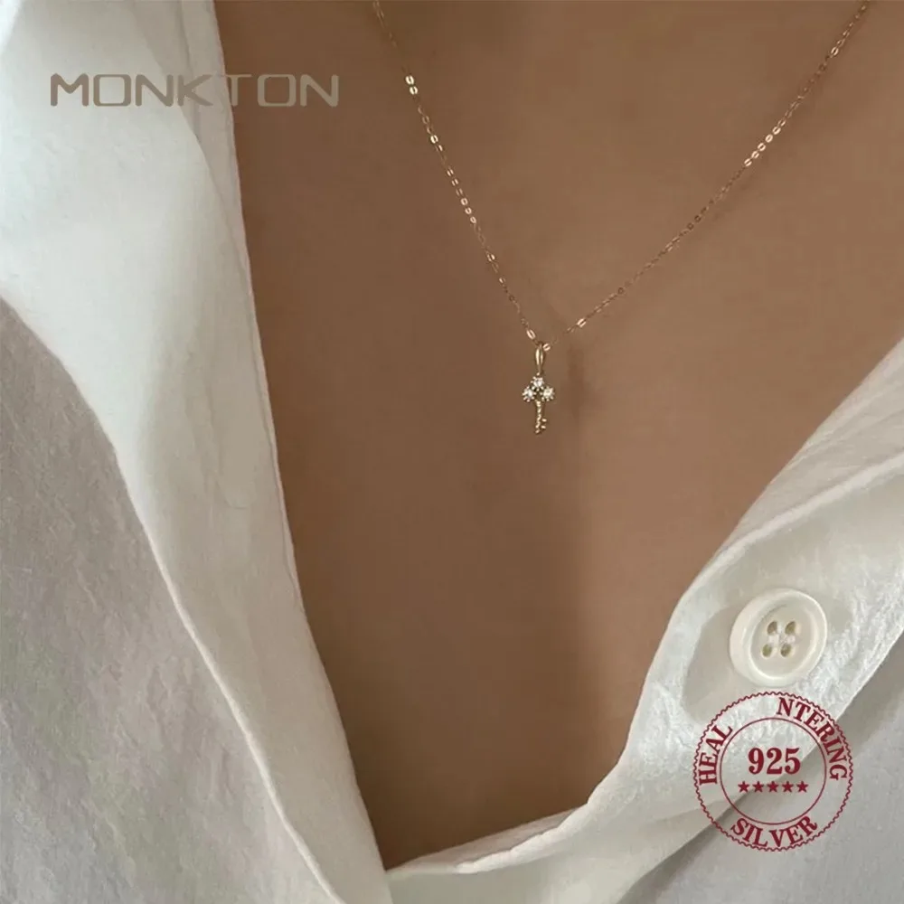 Monkton S925 Sterling Silver Plating 14K Gold Necklace for Women Zircon Key light luxury Mini Clavicle Chain Jewelry Accessories $3.80