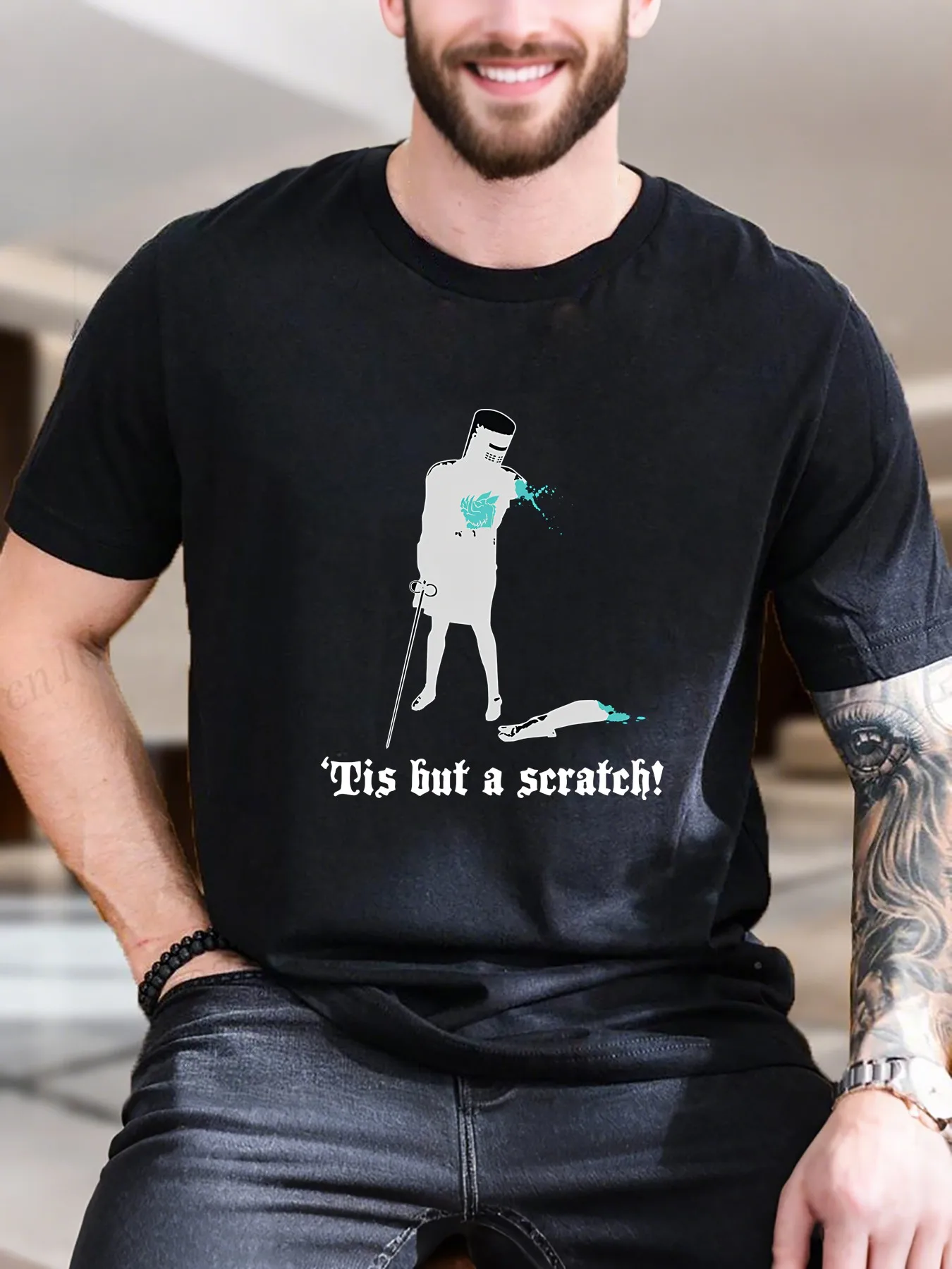 New Arrival Fashion Men's Graphic Print Short Sleeve T-Shirt 100% Cotton Soft Breathable Streetwear Dark Style with Violent Print $12.17