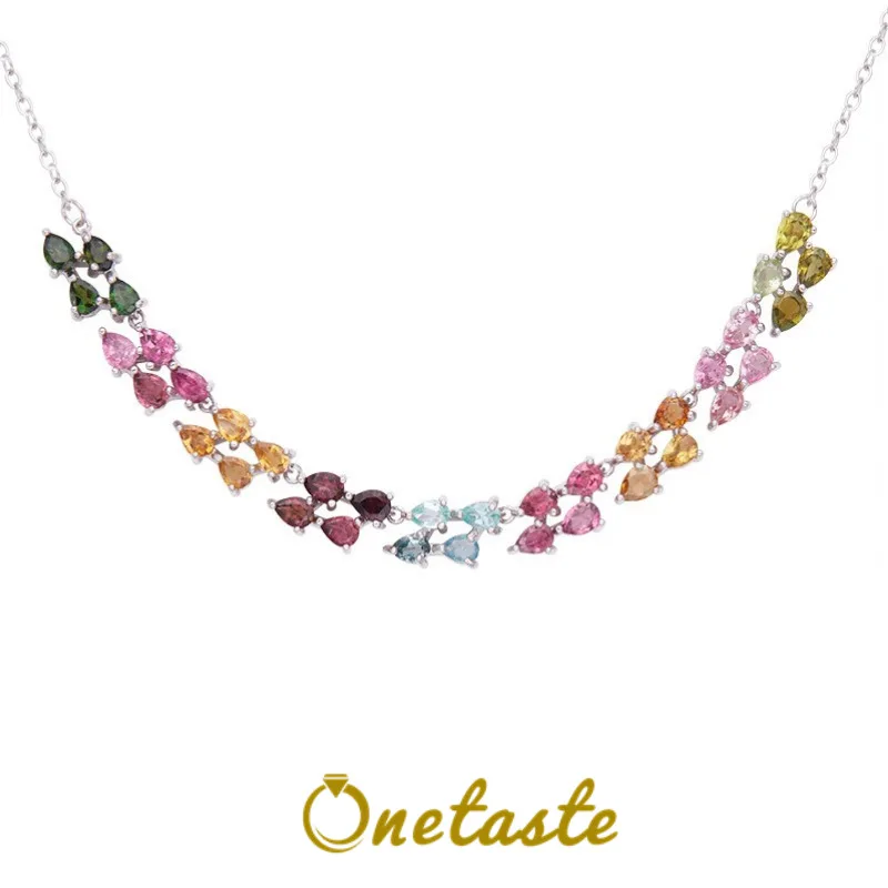 925 Sterling Silver Colored Tourmaline Stone Two Row Curve Bar Charm Necklace Women Dainty Fashion Shiny Chokers Necklaces Gift $48.58