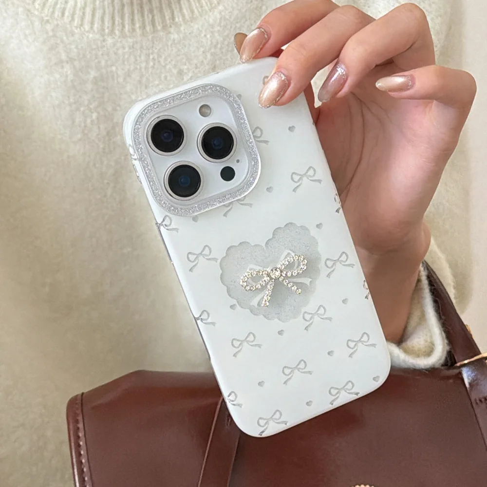 Shining Photo Frame Full Screen Bowknot Transparent Love Heart Logo Fashion Girl Phone Case for iPhone 14 15 16 17 Pro Max Cover $6.22