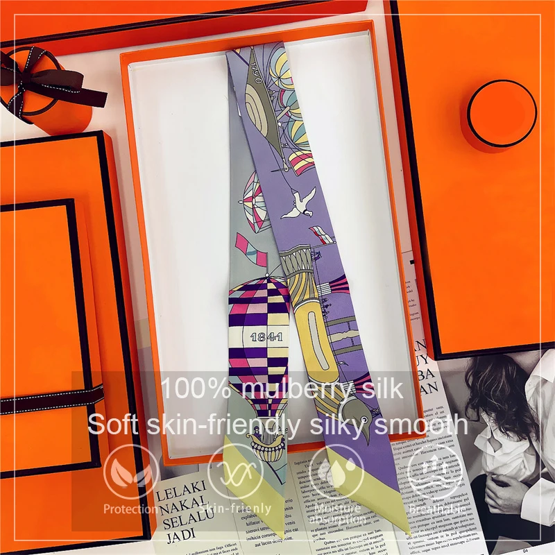 Skinny Mulberry Silk Scarf for Women Hair Strip Silk Ribbon Neck Scarves Bag Handle Ribbon Kerchief Ladies Ribbon Hair Band $3.58