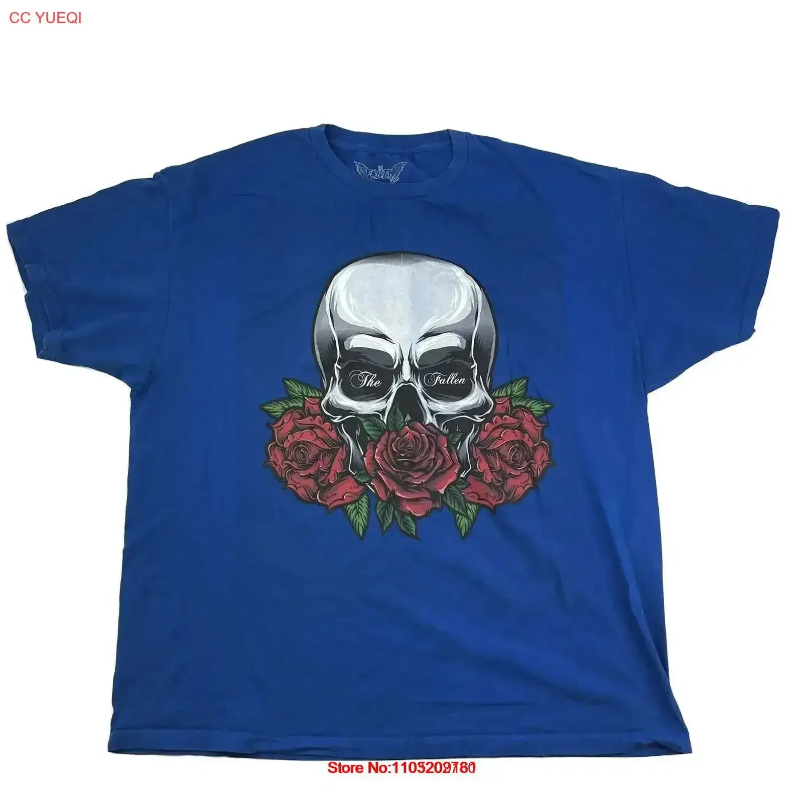 The Fallen Skull Head Roses Fear is a natural Reaction Blue T Shirt Men s 2XL vintage Washed Stretched fashion graphic vintage $7.42