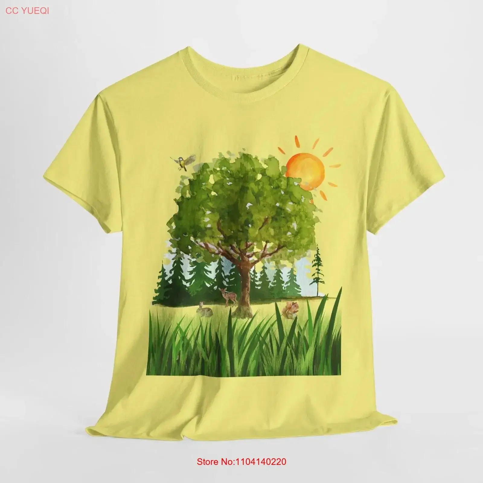 Nature Inspired Heavy Cotton T Shirt with Tree and Sun Design vintage Washed designer clothes homme Casual Comfortable fashion $6.78