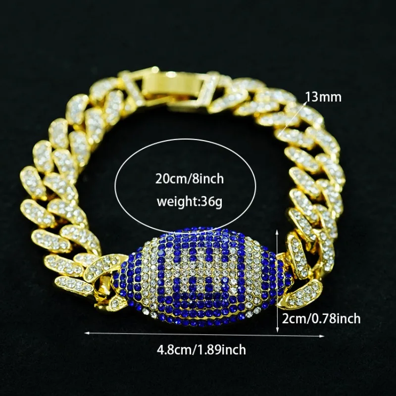 New Colorful Rugby Ball Alloy Bracelet for Men - 13MM Cuban Chain Hip-Hop Trendy Streetwear Fashion Jewelry Gift $8.92