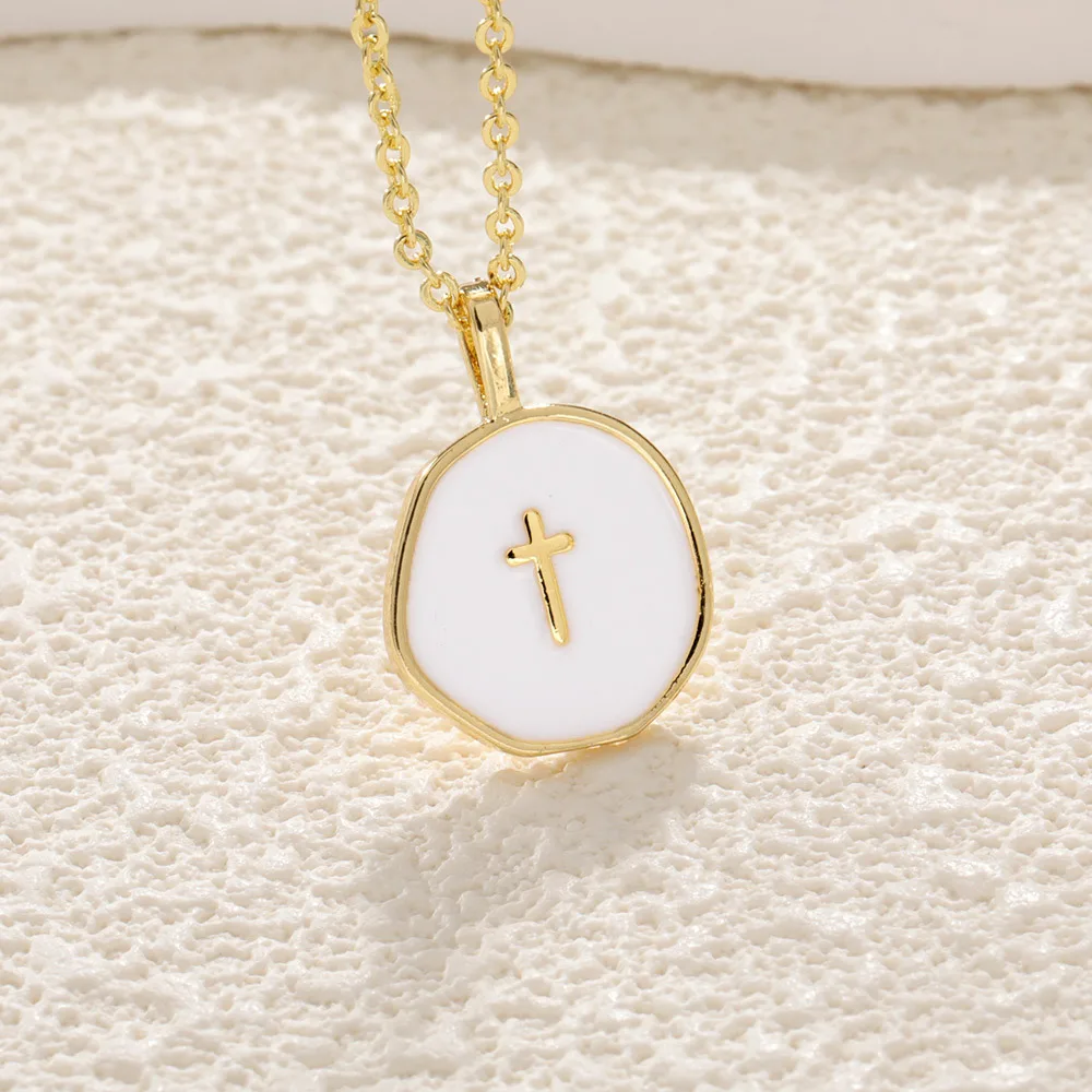 Lsysss Fashion New Hot-Selling Oil-Drip Cross Necklace Women's Cross Necklace Clavicle Chain Necklace Niche Light Luxury Blue $1.59