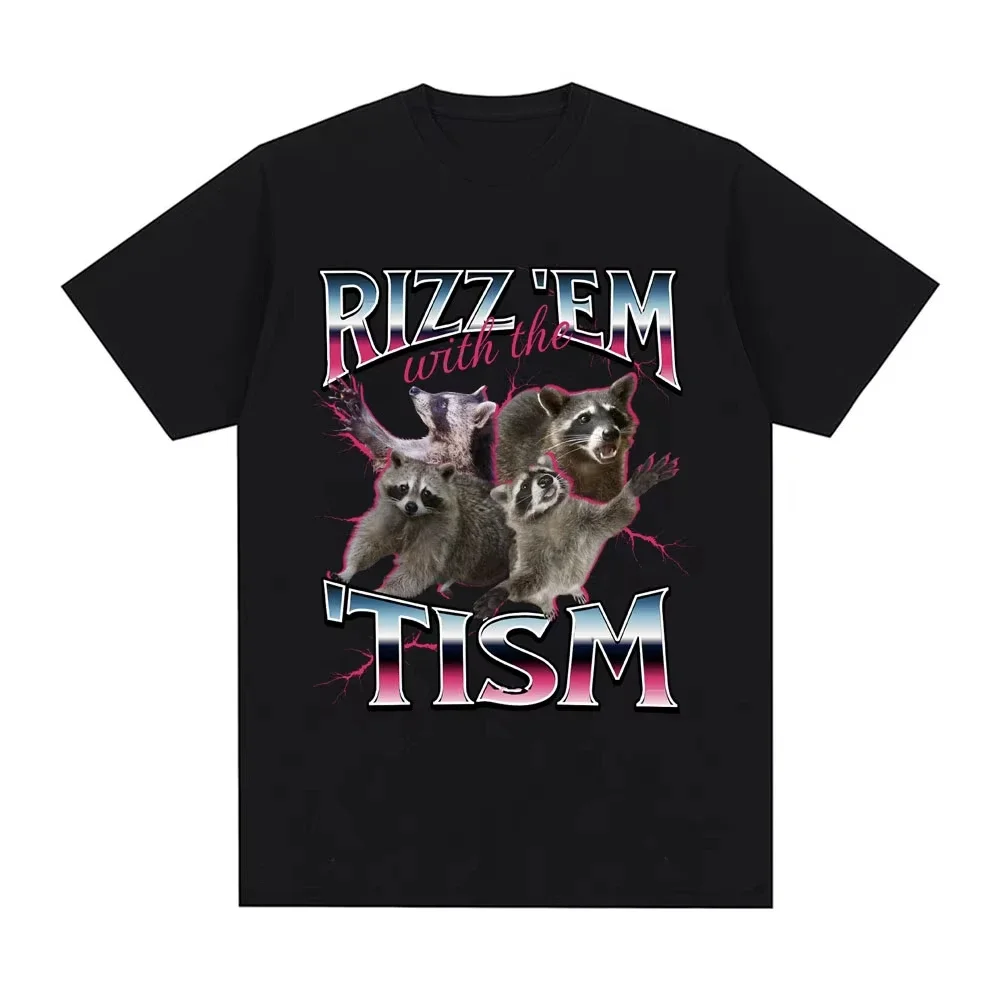 Rizz Em with The Tism Autism Racoon T Shirts Summer Casual Fashion Short Sleeve T Shirts Men's Women Cotton Oversized T-shirts $7.64