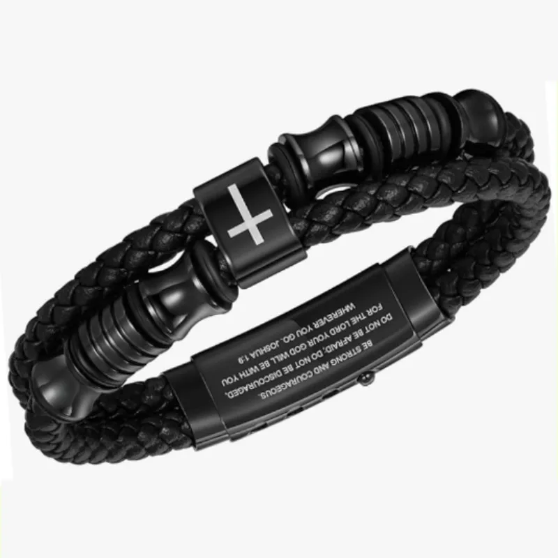 Christian Black Leather Bracelet for Men Double-Row Braided Leather Faith Cross Bracelets Jewelry Religious Baptism Easter Gifts $9.02