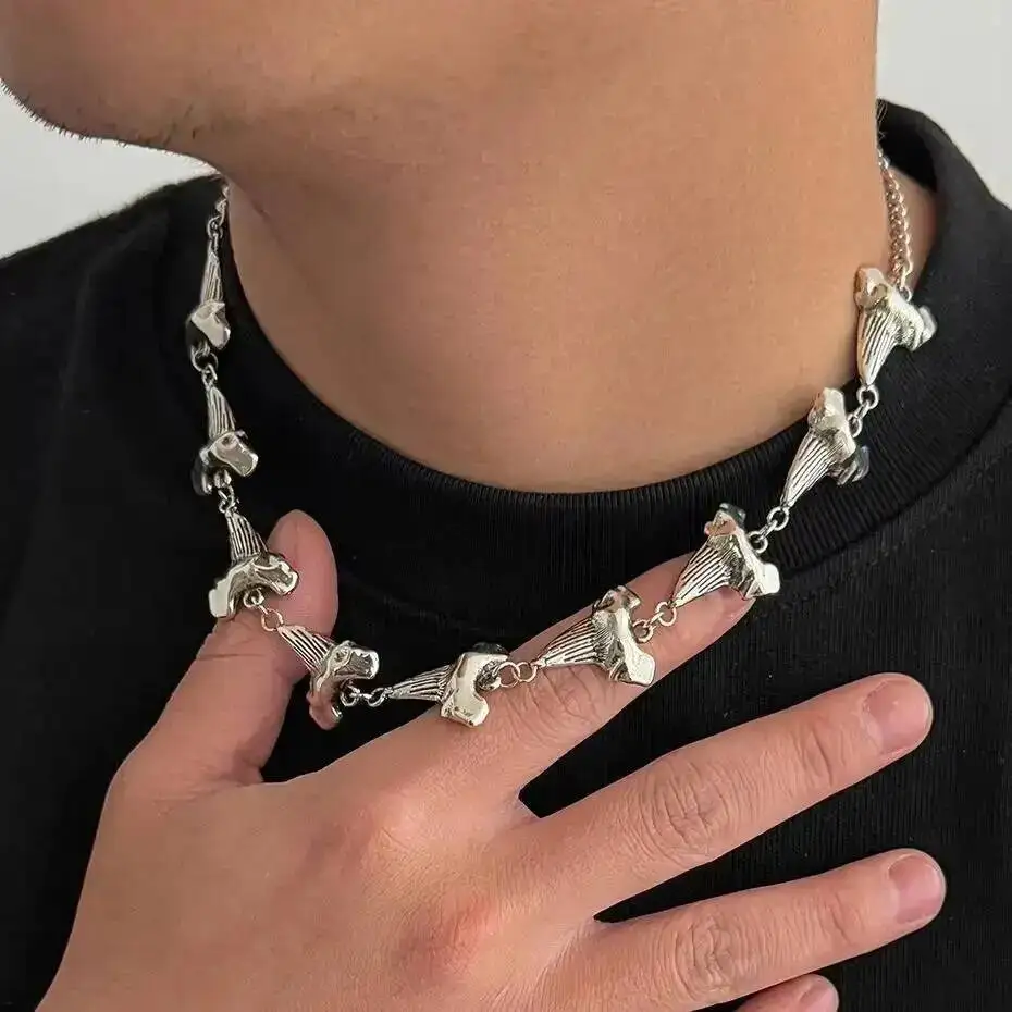 IngeSight.Z Creative Unique Silver Color Metal Shark Teeth Chokers Necklace Men Punk Irregular Geometry Clavicle Chain Jewelry $3.76
