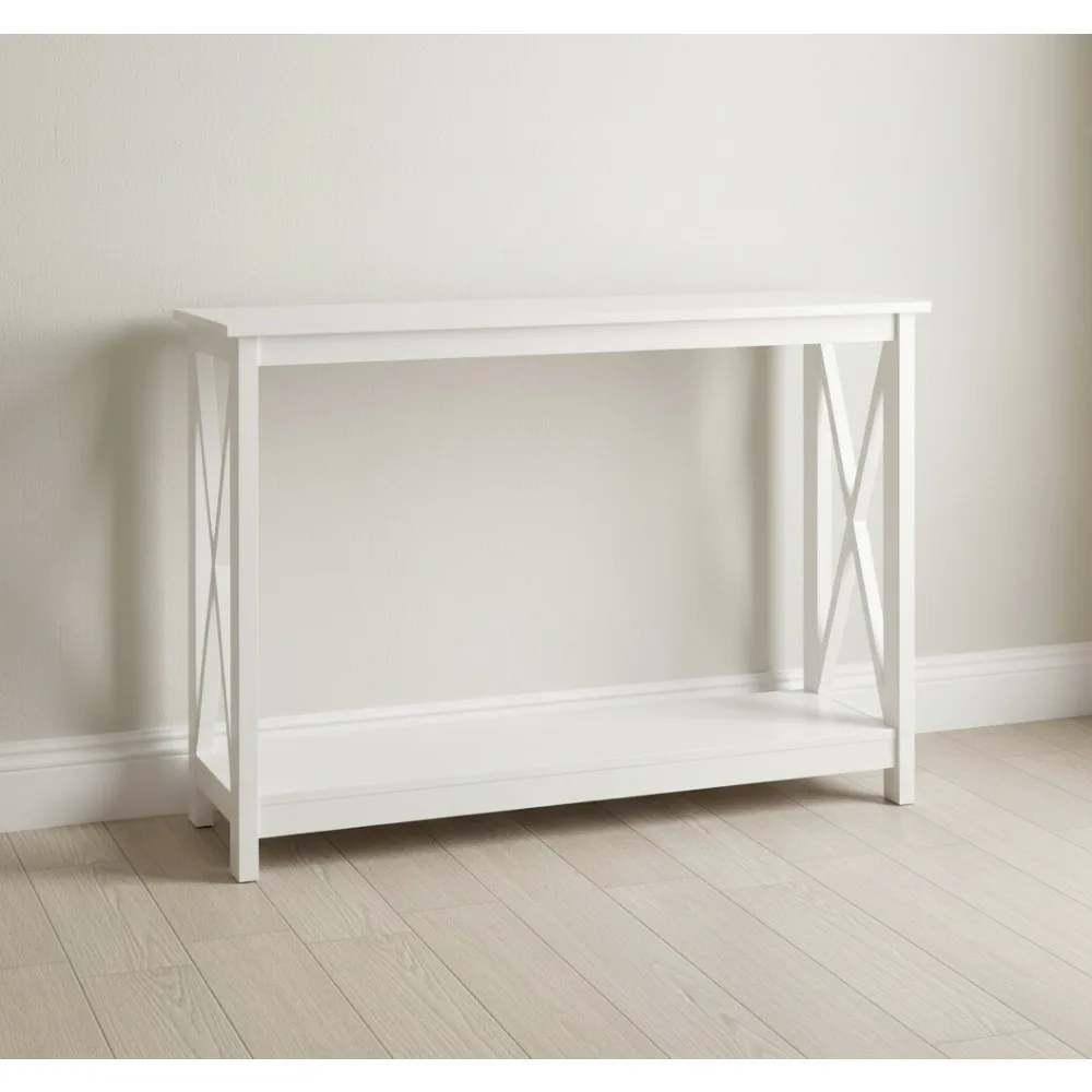 Elegant 39.5" Console Table with Storage Shelf, Transitional Entryway Sofa Table for Living Room & Bedroom, Ivory $52.73