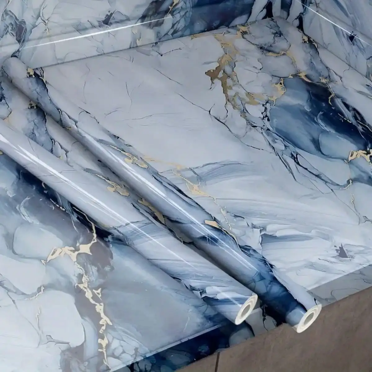 1 Roll New Blue Glacier Golden Self-Adhesive Wallpaper, Waterproof Moisture Oil-Resistant Decal Suitable For Kitchen Countertops $5.53