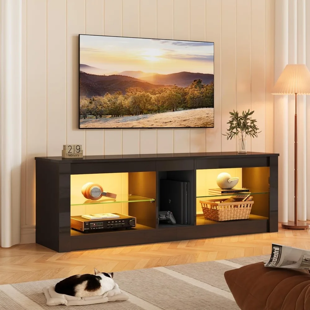 Modern TV Stand for 65inch TV with LED Lights,High Gloss Entertainment Console Table with Storage Shelves for Living Room Glossy $146.76