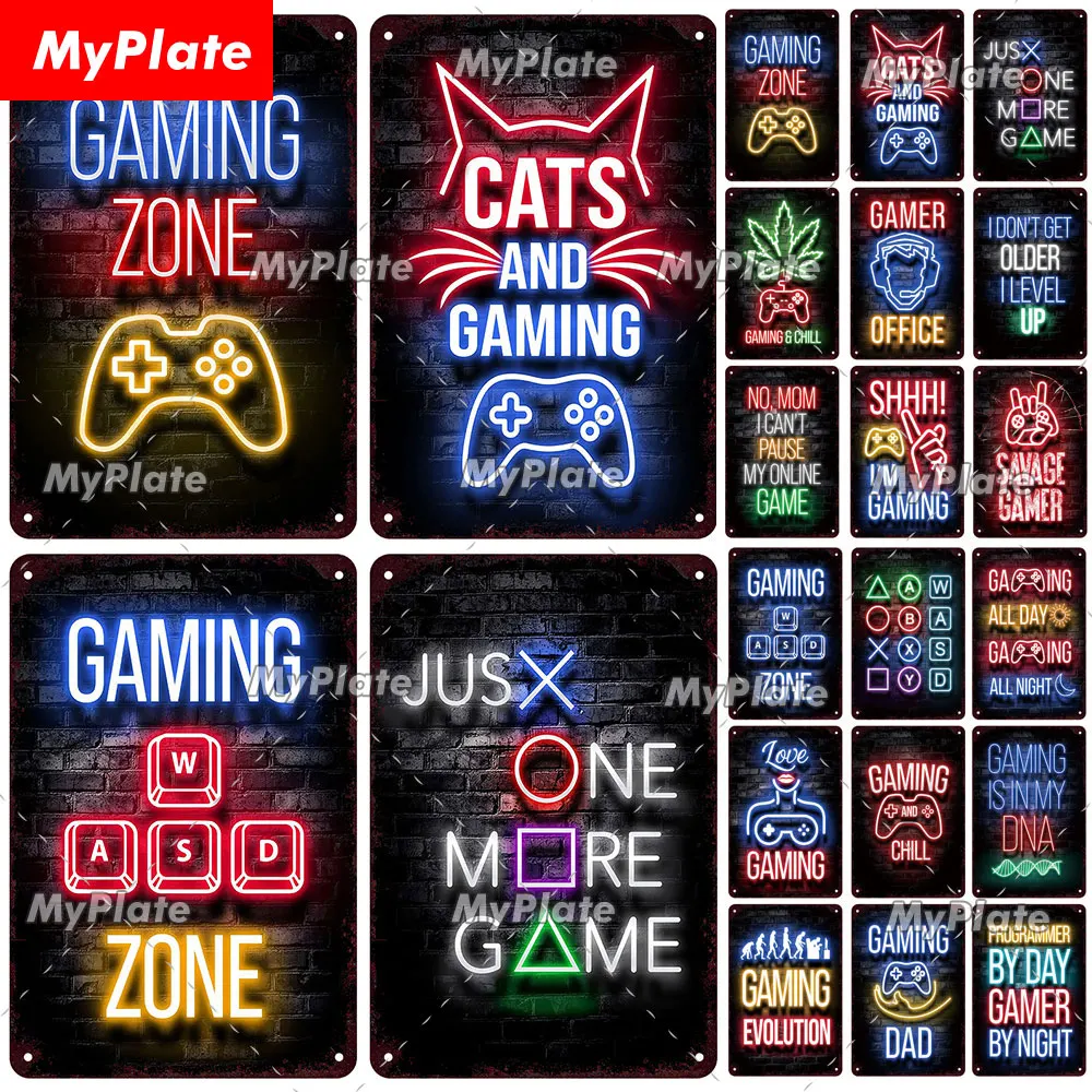 [MyPlate] Vintage Gaming Zone Neon sign Metal Sign Plate Tin Sign Wall Decor For Home Bar Home Plaque Decoration Man Cave Poster $7.65