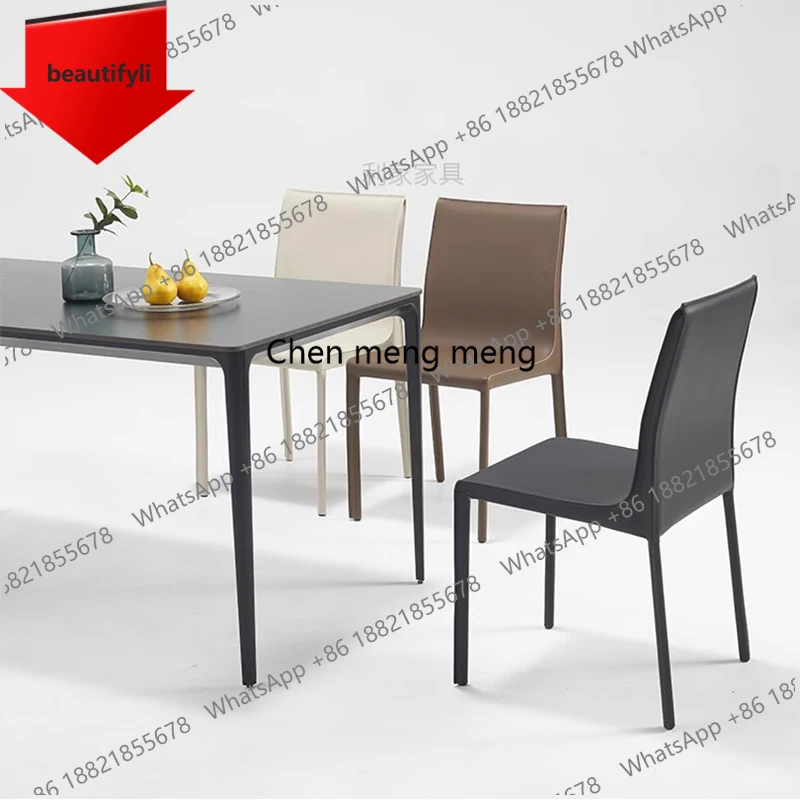 01A Italian Minimalist Dining Chairs Leather European Vintage Dining Chairs Lazy Trendy Sillas Para Sala De Estar Furniture $537.89