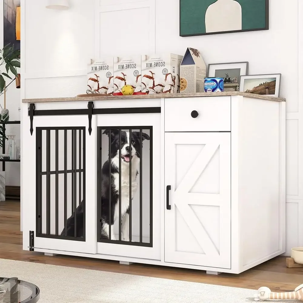 44 Dual-Function Furniture-Style Dog Crate with Storage Drawer and Cabinet, Sturdy Indoor Kennel for Small to Medium Dogs, White $195.76