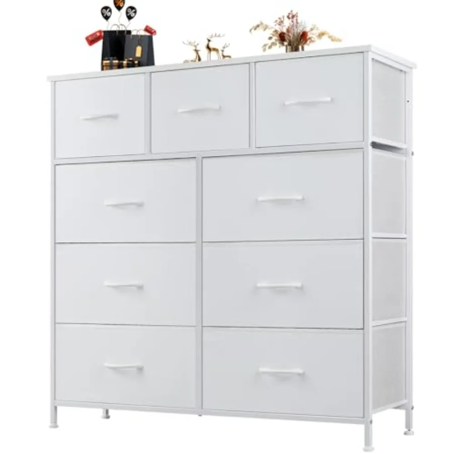 9 Drawer Fabric Dresser Tall Chest Storage Organizer Tower with Cabinet Metal Frame and Wood Top Lightweight Closet Furniture f $79.47