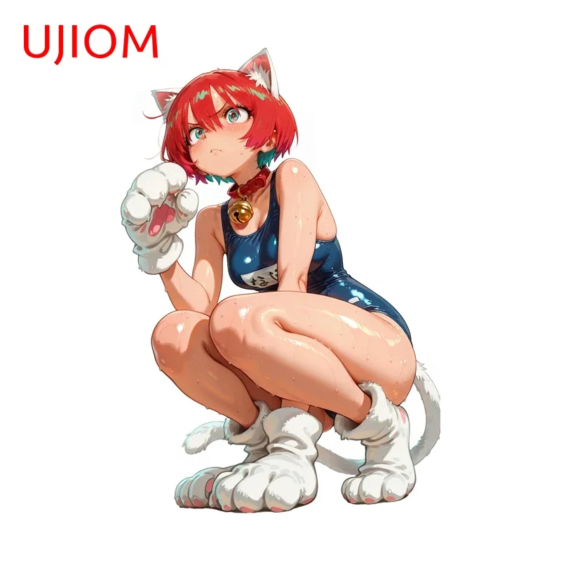 UJIOM Attractive Cat Girl Wall Stickers And Decals Creative Custom Printing Computer Case Decal Nice Sunscreen House Accessories $1.54