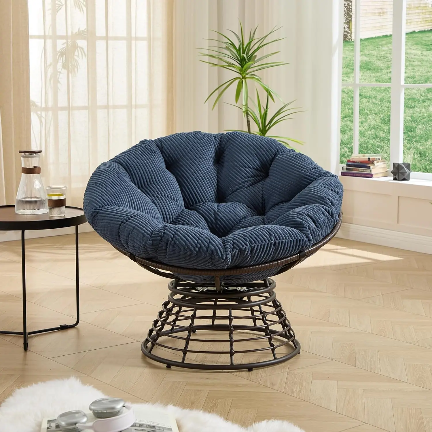 37in Papasan Chair Tufted Cushion Metal Frame Wicker 300lb Living Room Balcony Yard Customized $153.74