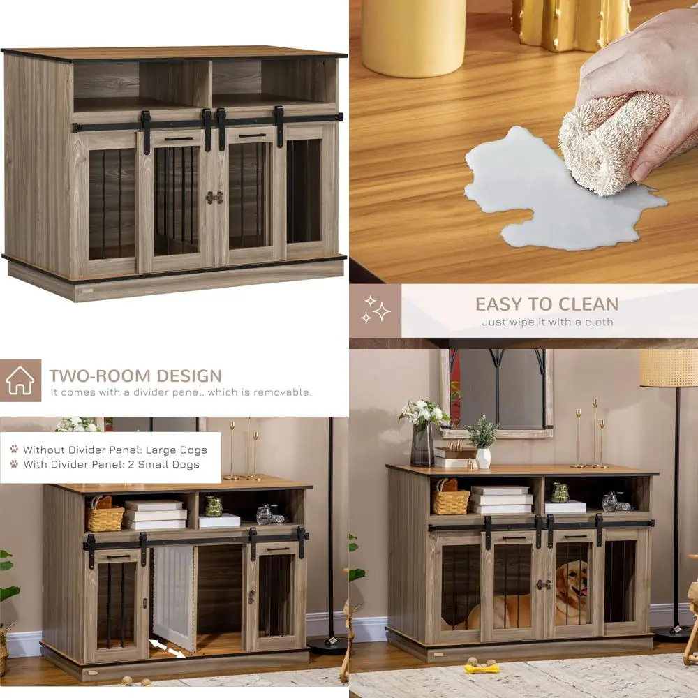 Large Dog Crate Furniture or Small Dog Double Kennel with Shelves, Sliding Doors, 47 x 23.5 x 35, Oak Finish, Ideal for Pet Comf $214.06