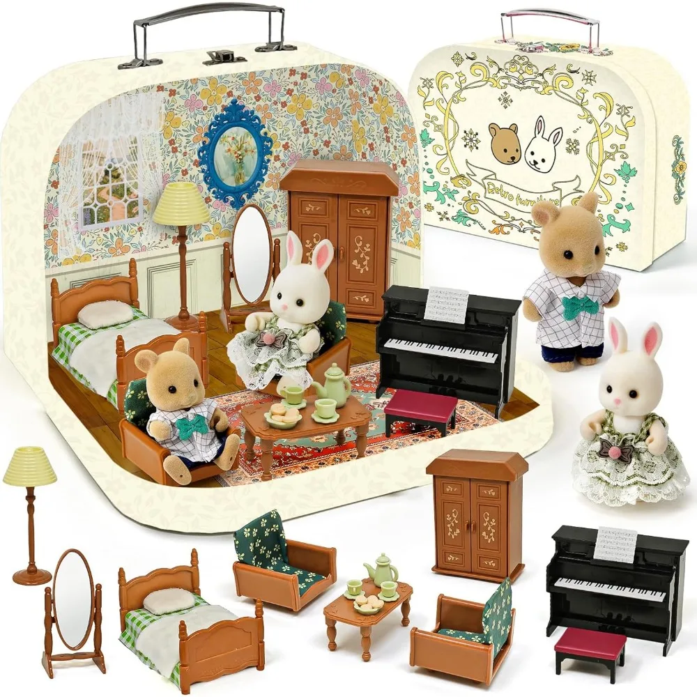 Complete Mini Bedroom Playset with Two Dolls Furniture and Accessories for Pretend Play Gift for Kids 3 and Up $65.90