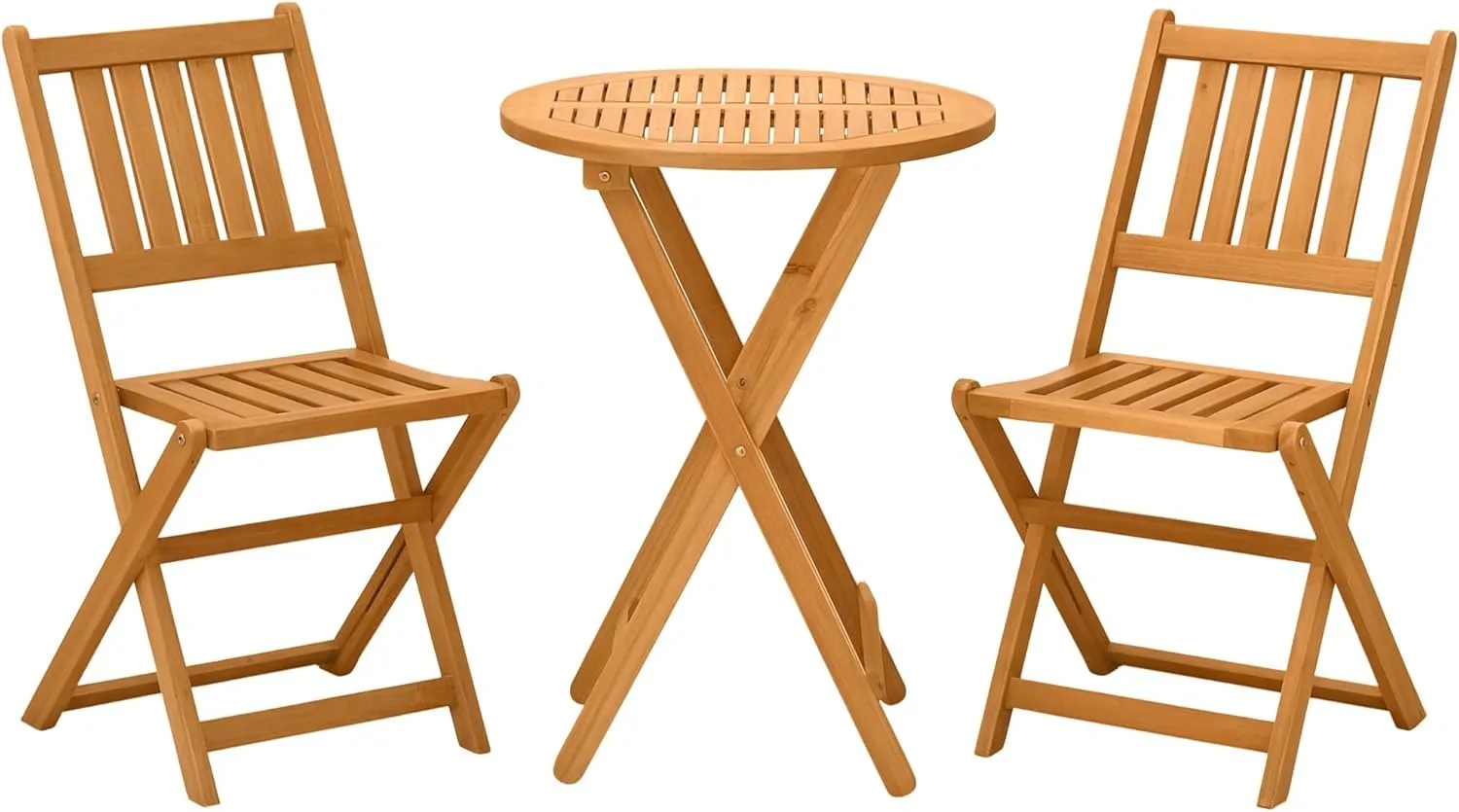 3-Piece Acacia Wood Bistro Set, Folding Patio Furniture with 2 Folding Chairs and Round Coffee Table, Teak, Slatted Finish, for $118.30