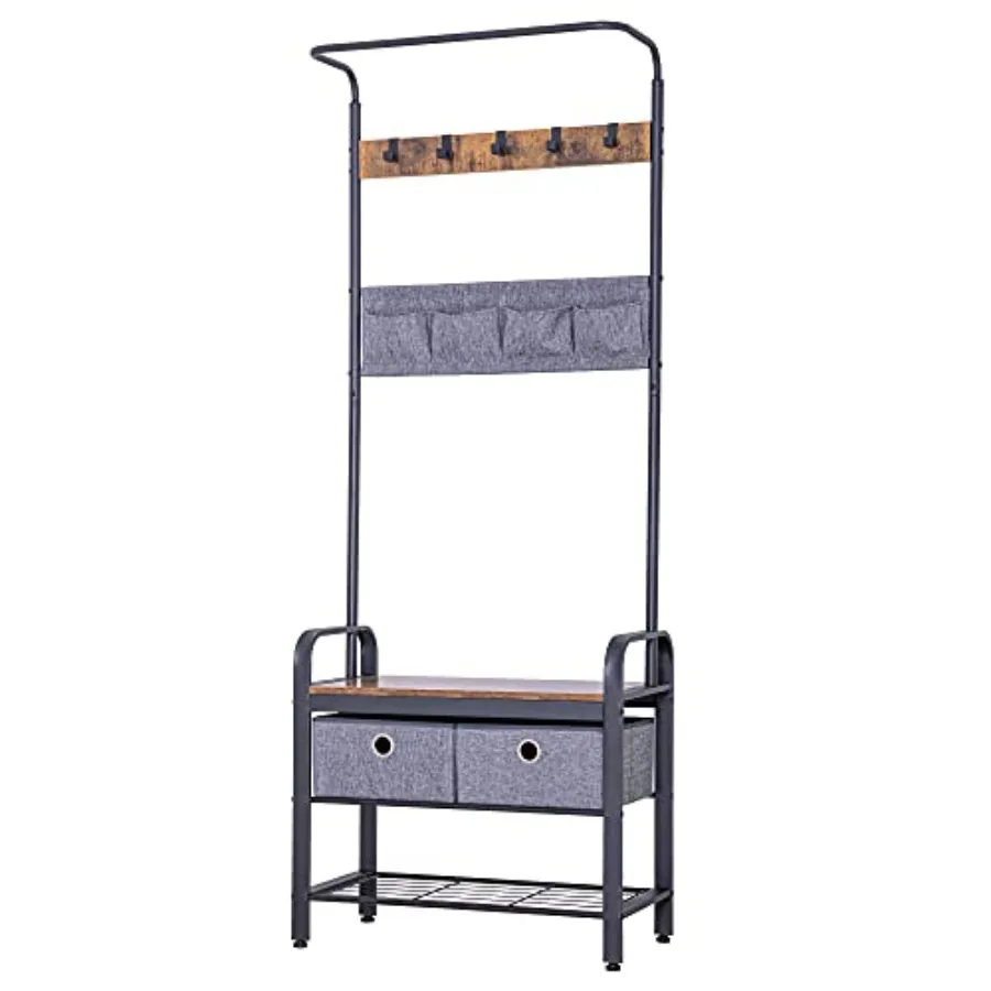 Vintage Coat Rack 3 in 1 Hall Tree Entryway Coat RackWood Look Accent Furniture Metal Frame with 5 Hooks 4 Pockets 2 Storage Bo $74.07