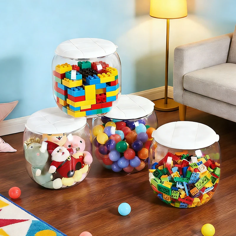 Transparent Storage Stool Rotating Lid Dual Handles Multi-size Seatab for Living Room Kids Room Toy Lego Organization $15.76