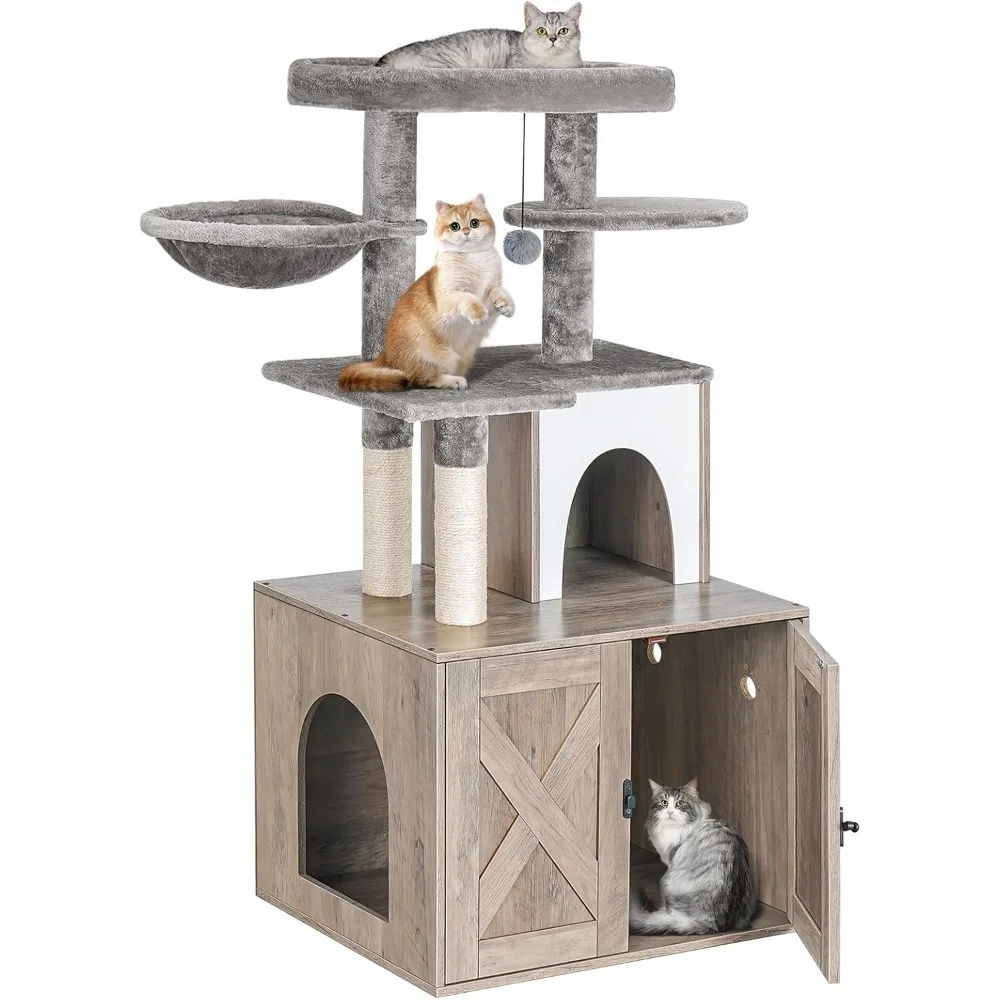 Snughome Cat Litter Box Enclosure with Tree Tower and Condo, Hidden Washroom Furniture with Sisal Scratching Post and Soft Plush $82.06