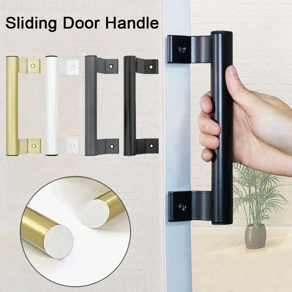 Aluminium Alloy Punch-free Furniture Cabinet Handle Sliding Barn Door Handle Pull And Flush Hardware Set Wood Door Drawer Handle $6.56