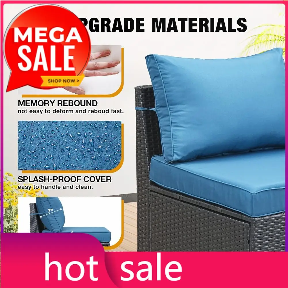Hot topicHot-sellingAll-Weather Outdoor Wicker Sectional Patio Furniture Set with Cushions and Glass Table in Peacock Blue $372.53