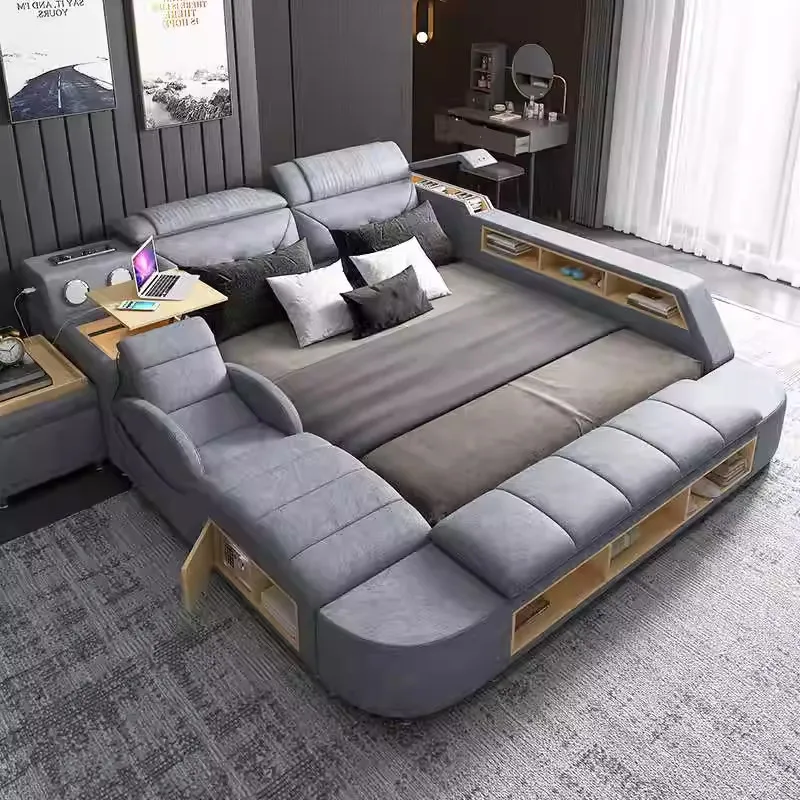 150x200cm Multifunctional Double Bed Massage Master Bedroom Storage Bed Headboard Twin Frames Wedding Technology Cloth Furniture $3,714.10