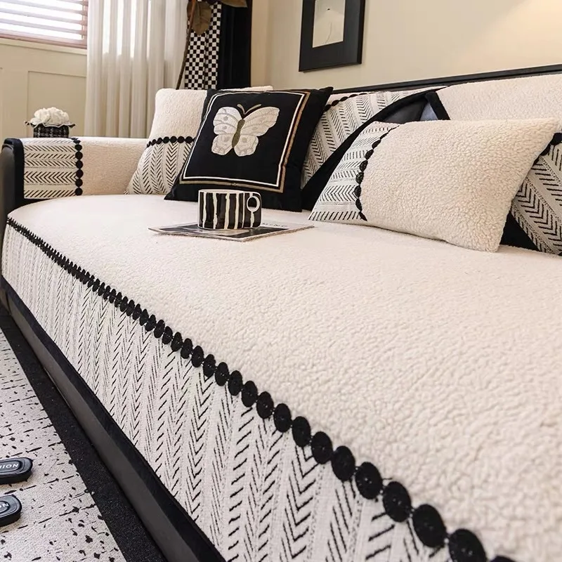 1pcs Simple Plush Sofa Mat Winter Warm Anti Cat Scratch Couch Cushion Dust-proof Durable Living Room Furniture Protector $13.63